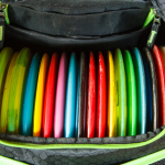 I currently have every disc I own in this bag. During my first outing at De Laveaga, I had two less than my current capacity and picked up a used DX Rhyno and Ace Race 2013 proto after the round. Currently there’s 25 discs in the bag. My Dagger and two DX Rhynos in the putter spot up top, and the rest in the main compartment, including three other putters (DX and Champ Aviar, and Trilogy Shield proto). Probably too many discs, but having the bottom filled to capacity definitely helps the bag stand up better.